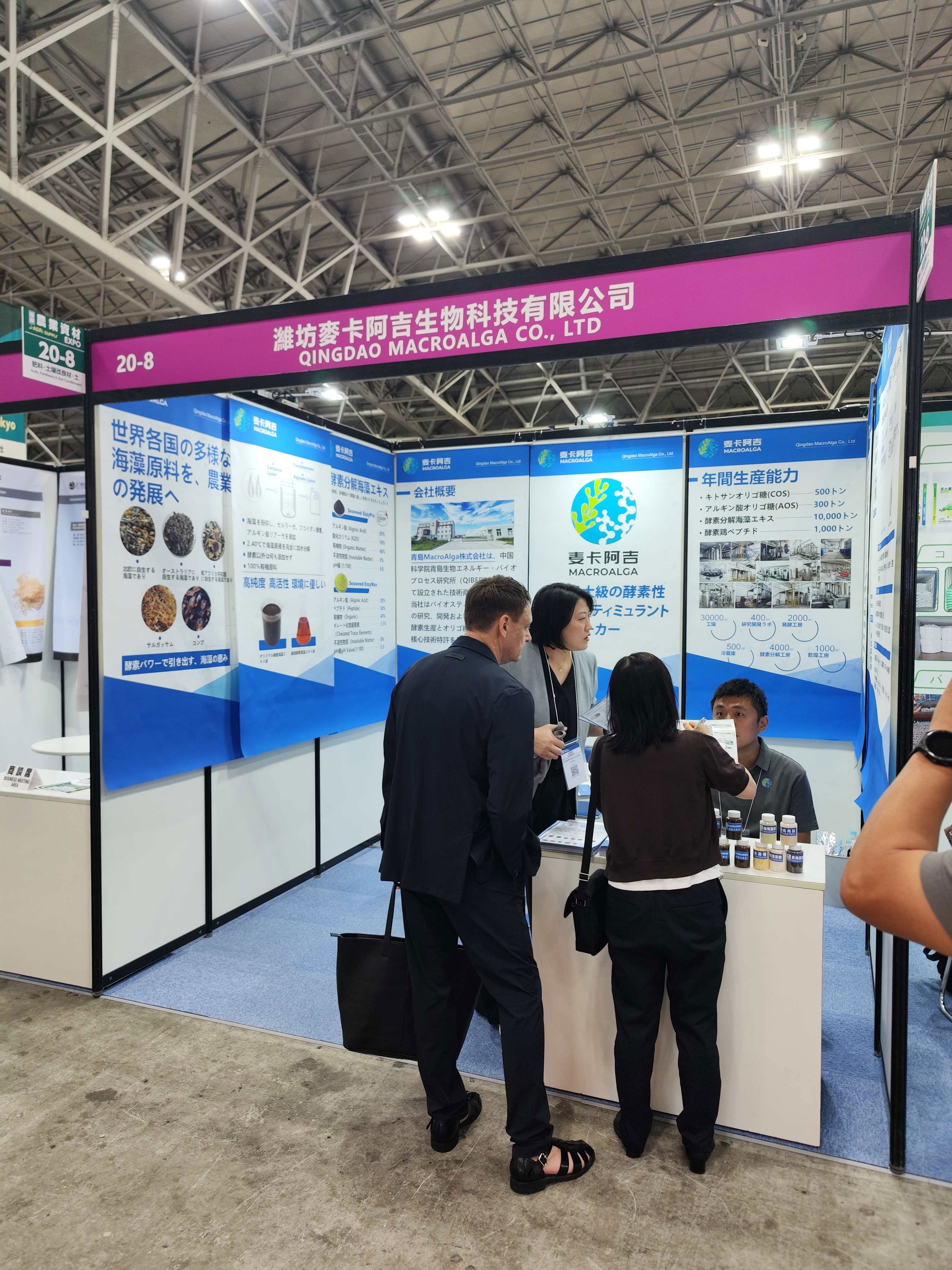 导语:2025年10月1日,亚洲顶级农业科技盛会——J-agri日本东京国际农业展在东京幕张国际会展中心盛大开幕。潍坊麦卡阿吉生物科技有限公司(中科兴海)携核心海藻生物科技产品精彩亮相,以专业展位设计、前沿技术成果及精准市场定位,成为展会焦点,彰显中国农业科技企业的国际竞争力。